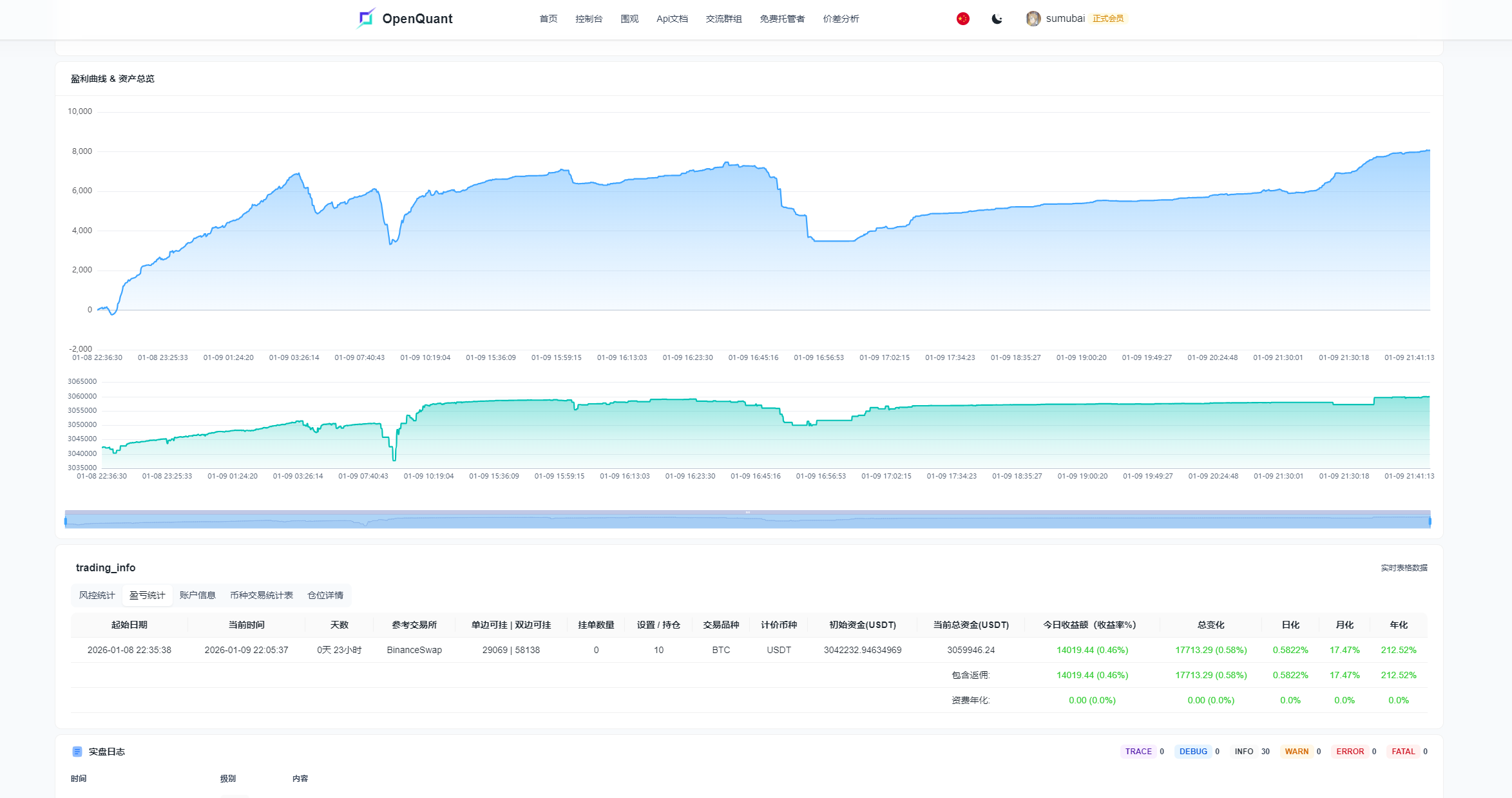 目前已经运行24小时,交易了三个品种,盈利1.7wu(0.6%收益率)