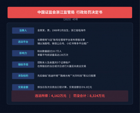 我们从前⼏天的一条新闻说起:某财经平台⼤V,通过亲友账户提前建仓,再利⽤⾃身百万粉丝的号召⼒公开荐股,等散户蜂拥接盘后⾼位出货————经典的"抢帽⼦"操纵⼿法,违法所得超四千万,最终被罚没⼋千余万。