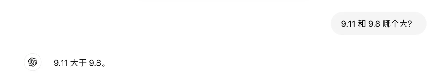 也就是说,在模型眼里,“9.8”和“9.11”只是两串 token,而不是像人类在小学数学里学到的那种、带有明确大小关系的十进制数。
